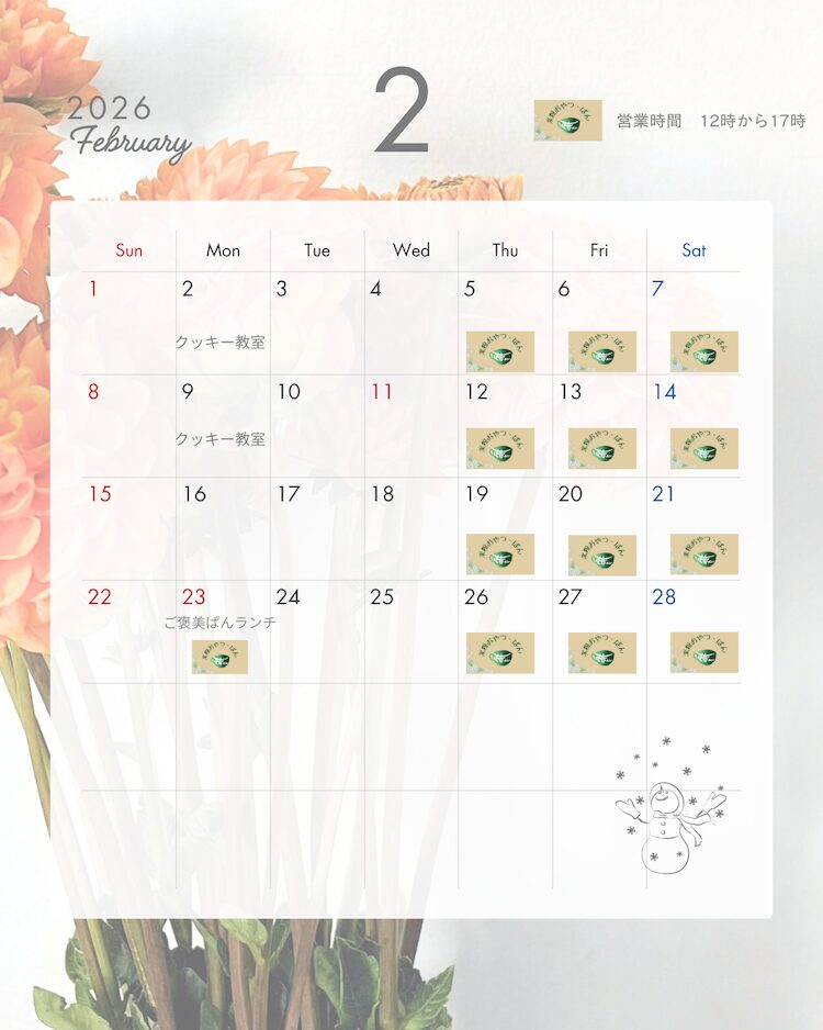 カレンダーに印がない日でレッスンご希望日・時間を第3希望までご連絡ください。