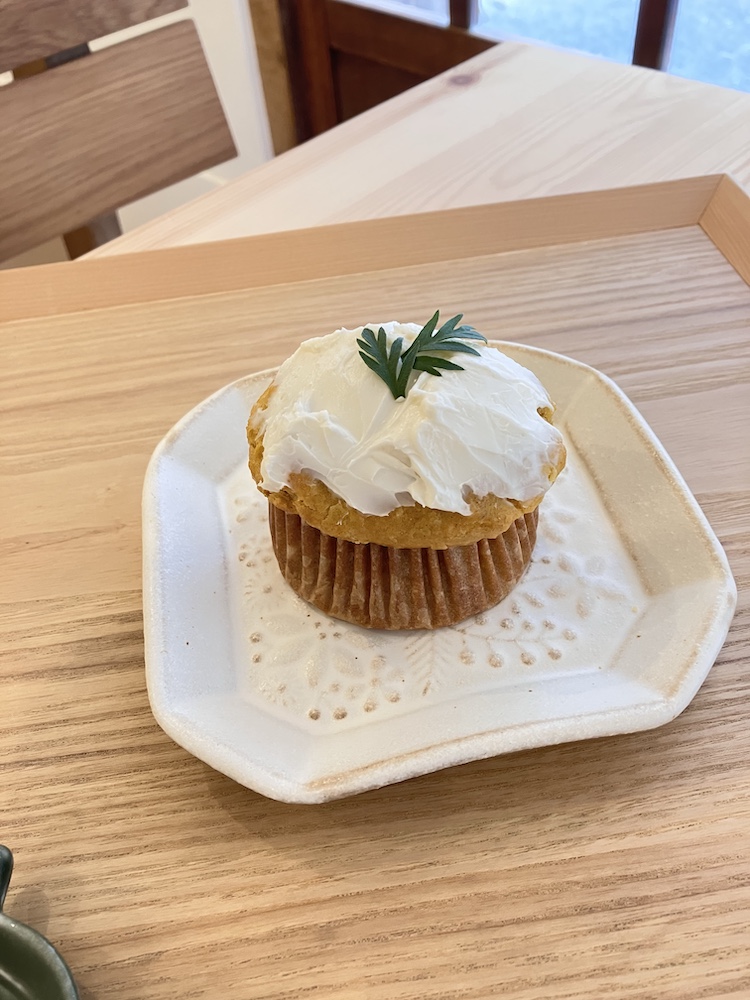 平日ぱんランチのお写真とこの時期に収穫できた花音ふぁーむの無農薬にんじんを使ったにんじんケーキと無農薬レモンが購入できたのでレモン糀マフィン(砂糖不使用)でしっとりふわで人気で